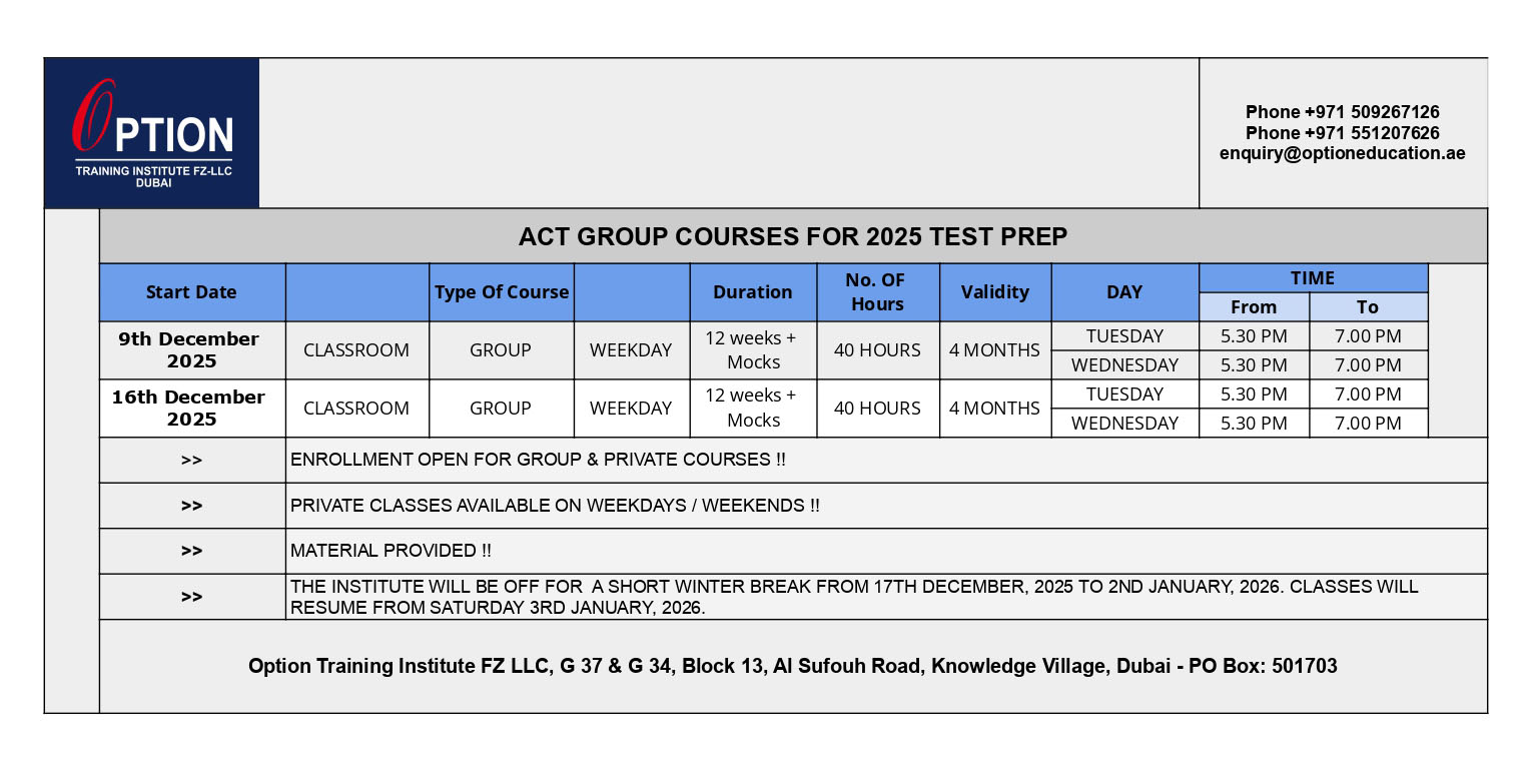 At Option, training for the ACT is fun and getting scores in the upper range (28-32) and higher (33-35) is not difficult provided the student selects the right training platform.