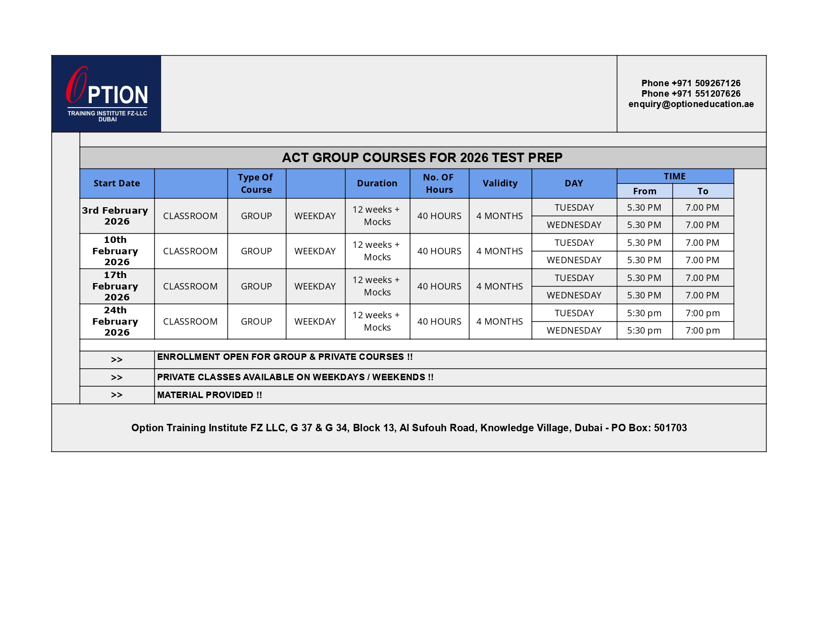 At Option, training for the ACT is fun and getting scores in the upper range (28-32) and higher (33-35) is not difficult provided the student selects the right training platform.